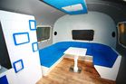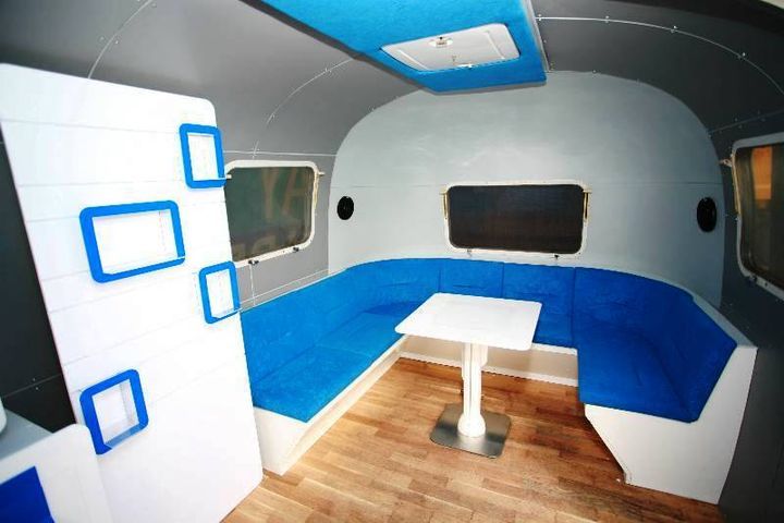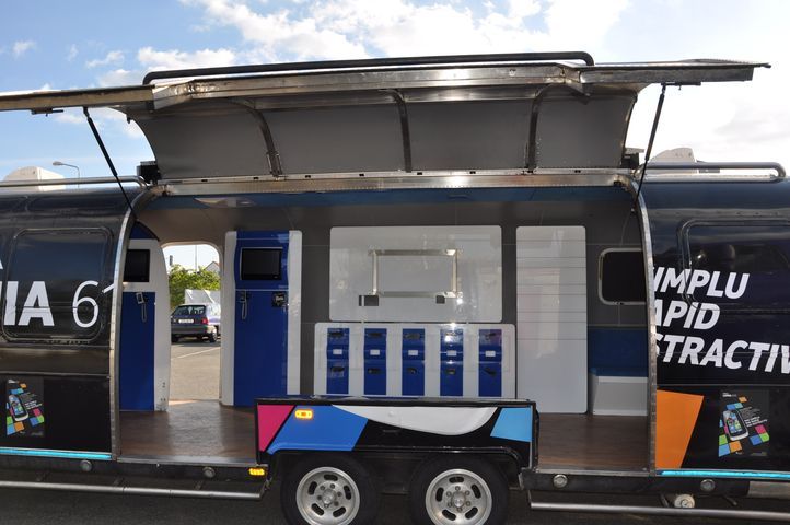 Americká legenda na kolech – karavan Airstream. Vnitřní prostor nabízí využití nejen pro veletrhy a výstavy, ale také pro roadshow. Výklopná boční stěna, vytváří střechu pro podium o rozměru 4x2m (není podmínkou využívání) a umožňuje vstup do karavanu.